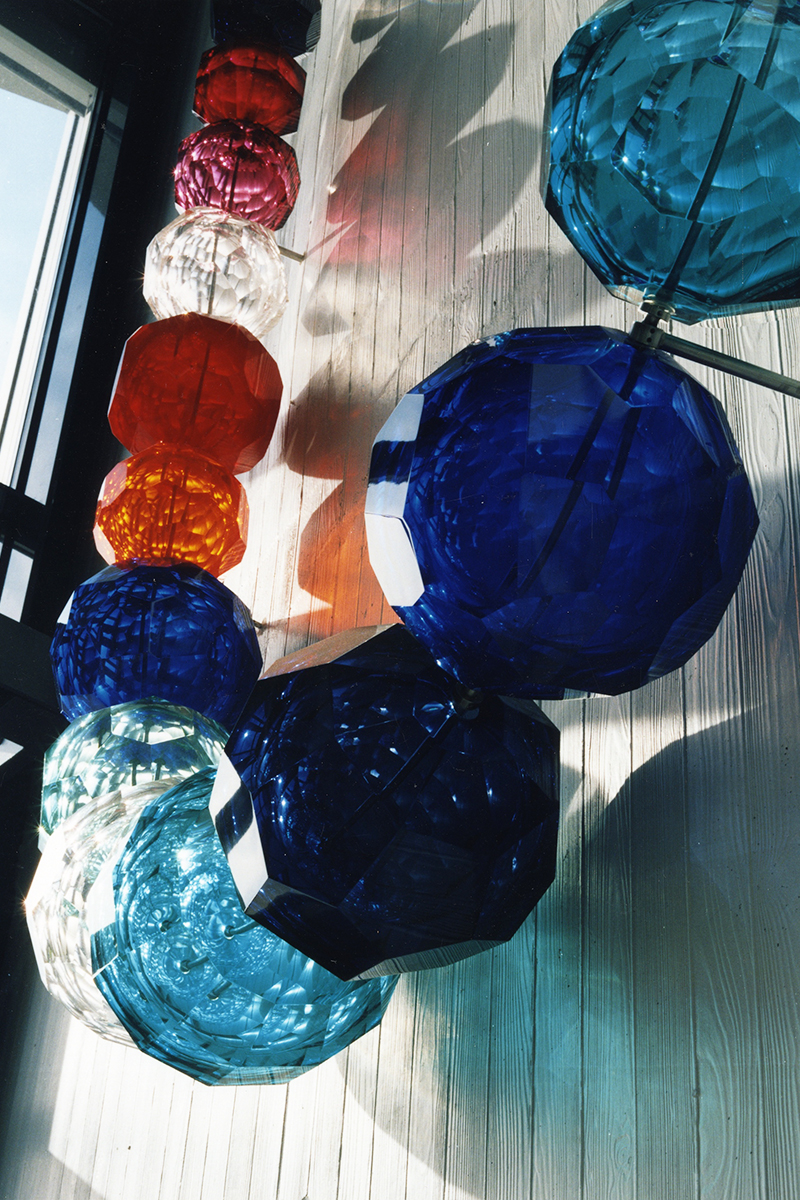 42 Kugeln aus Muranoglas, Edelstahlverbindung, 470 x 210 x 40 cm