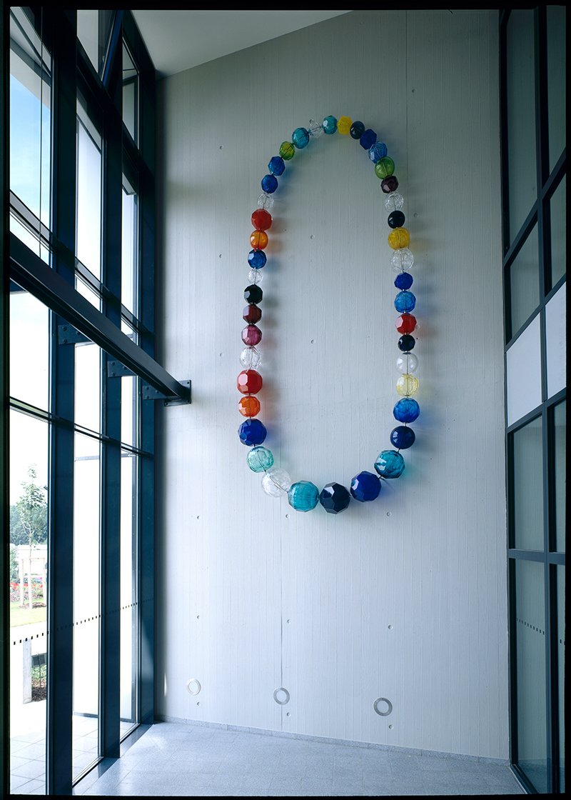 Die Glasperlenkette ist entstanden für die Eingangshalle im Neubau des Wirtschafts- und Betreuungsgebäude