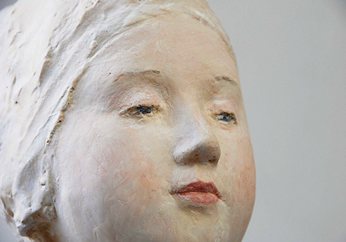 Skulptur: Beton, farbig gefasst, ca. 52,5 x 45 x 24 cm